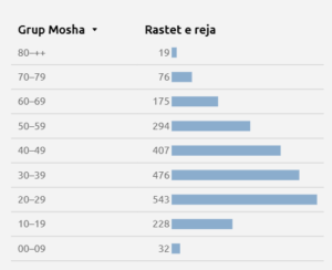 Shifra më e madhe e të infektuarve vazhdon të jetë mosha nga 20 deri në 29 vjeç, ku 543 është numri i të infektuarve.