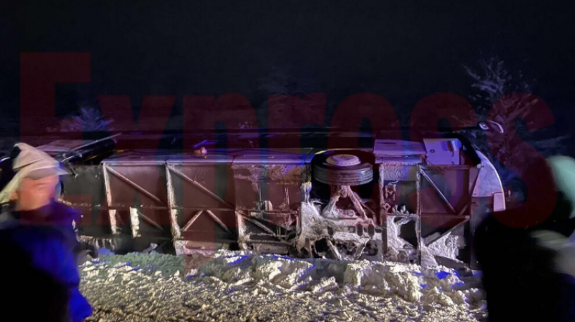 Në një fotografi të siguruar nga Gazeta Express shihet autobusi i një kompanie turistike kosovare që ka dalë nga rruga dhe është rrokullisur.