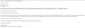 Avdullah Hoti pranon letër nga Angela Merkel: Mezi pres të punoj me ju