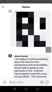 Ndërsa, në një koment tjetër ka thënë që Kosova ka nevojë për zërin e të gjithëve jo veç të Albinit.