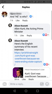 Ndërsa, Kosnett nuk vonoi përgjigjen, “Albin Kurti, Kryeministri në detyrë”, shkruan gazeta inFokus.