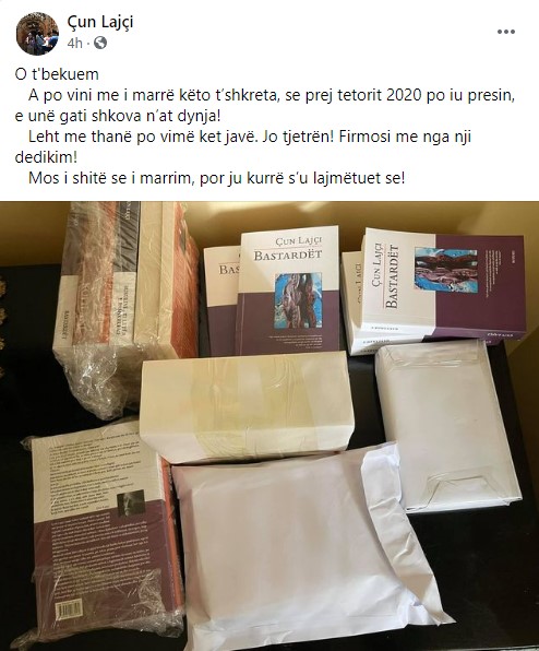 Përmes një postimi, ai iu dërgon mesazh personave në fjalë që të vijnë e t’i marrin librat siç kishin premtuar.