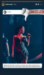 “E anuluar”, shkroi këngëtarja shqiptare në një postim të publikuar në storien e saj në Instagram.