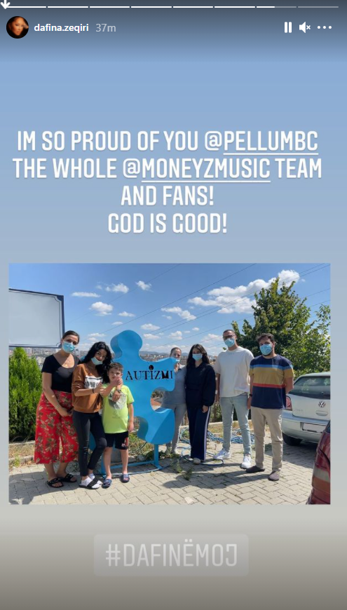 “Sot si përfaqësues i Moneyz Music Manager/Ceo, Pëllumb Çitaku vizitoj Shoqatën e Autizmit, me qëllimin për t’iu kumtuar se të gjitha të hollat që do të mblidhen nga shitja fizike e albumit Dafinë Moj do t’i dedikohen rasteve sociale që trajtohen në Shoqatën Autizmi në Prishtinë dhe degëve të saj në Lipjan, Podujevë e Prizren”, shkroi Dafina në mbishkrimin e fotografisë.