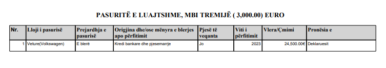 Agjencia Kundër korrupsion ka publikuar deklarimin e pasurisë për zyrtarët publik, ku një ndër ta është edhe deputeti i Lëvizjes Vetëvendosje, Gazmend Gjyshnica.