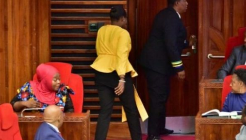 Kryetari më pas urdhëroi deputeten, Kondester Sichwale, të largohej. “Shkoni të visheni mirë dhe pastaj bashkohuni me ne përsëri më vonë,” tha Kryetari Job Ndugai.