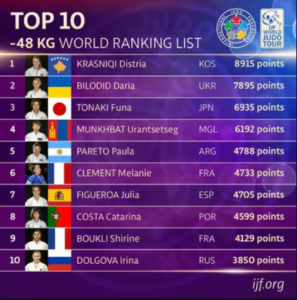 Federata Ndërkombëtare e Xhudos (IJF), ka publikuar sot top 10 xhudistet më të mira në botë në kategorinë nën 48 kg.