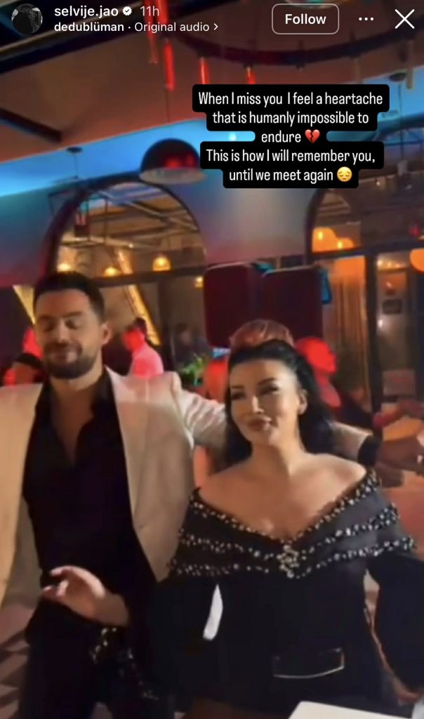 “Kur më merr malli për ty, ndiej një dhimbje në zemër që është njerëzisht e pamundur të përballohet 💔Kështu do të të kujtoj, derisa të takohemi përsëri”, ka shkruar ajo në foton e publikuar.