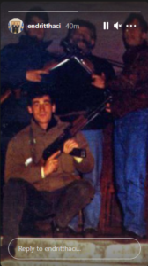 Endrit Thaçi, djali i ish-presidentit Hashim Thaçi, ka reaguar me një fotografi ndaj deklaratave të zëvendëskryeministrit Besnik Bislimi, i cili tha pala serbe është pajtuar që të hapen të gjitha arkivat, duke përfshirë edhe ato të Kosovës që kanë të bëjnë me UÇK-në. Bislimi dje ka deklaruar se kjo gjë është në favor të Kosovës.