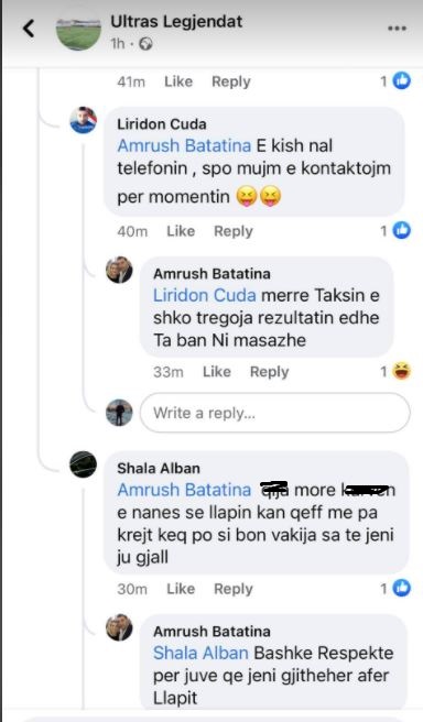 Ndër të tjera në komente tha: “Merre taksin e shko tregoja rezultatin edhe ta bën një masazh” një komentuesi.