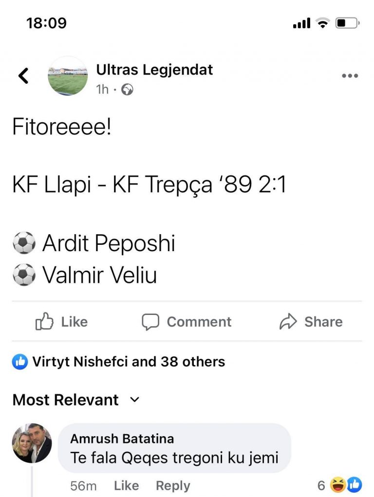 Megjithatë, një gjë skandaloze ndodhi pas ndeshjes, atje ku nënkryetari i Llapit, Amrush Batatina ka bërë komente ofenduese si dhe ka lejuar disa të tilla ndaj gazetares, Qeqa Krelani, shkruan gazeta blic.