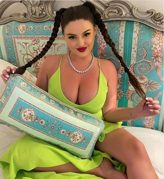 Ajo kishte lidhur flokët bishtaleca, ndërsa po mbante një jastëk në prehër, por fokusin e vuri tek gjoksi.