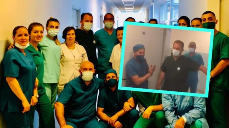 Festë në Klinikën Infektive: Kolegët e surprizojnë infermierin për ditëlindje