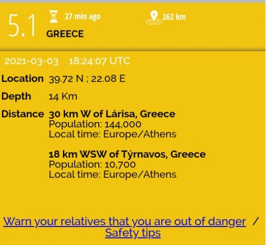Deri tani nuk ka raportime për viktima apo të lënduar, por njerëzit në Larisa kanë mbushur rrugët, duke lënë banesat dhe shtëpitë.