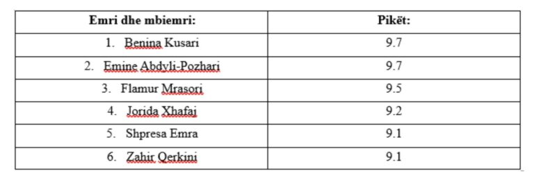 Pas përfundimit të intervistimit, Komisioni me rastin e poentimit vendosi t’i rekomandojë Kuvendit për votim listën prej gjashtë kandidatëve të suksesshëm si më poshtë, raportoi “Betimi për Drejtësi“.