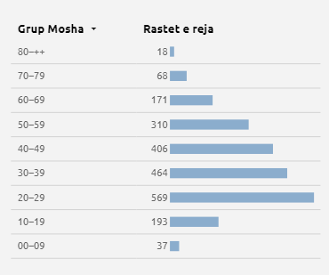 Sipas njoftimit, më së shumti raste të infektimeve u shënuan tek grup mosha 20-29 vjeçare, me gjithsej 569 të infektuar.