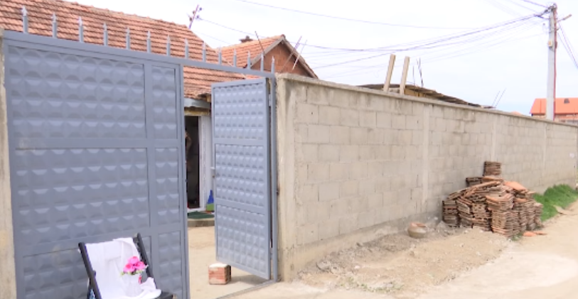 Një karrige e peshqir janë vendosur para derës së familjes Puçolli nga Fushë Kosovë.