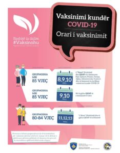 IKSHPK ka bërë të ditur se dje, sot e nesër do të vaksinohen personat mbi 85 vjeç në sallën “1 Tetori” në Prishtinë, si dhe në QKMF-të e komunave ku ka nisur ky procesi.