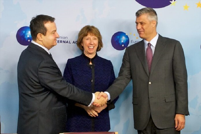 Nën drejtimin e Ashtonit, në vitin 2013, Kosova dhe Serbia, përkatësisht Thaçi dhe Daçiq, nënshkruan marrëveshjen e parë politike. Marrëveshja e 19 prillit të atij viti kishte 15 pika. Në të parën prej tyre përmendej formimi i një Asociacioni/Bashkësie e komunave me shumicë serbe në Kosovë. Marrëveshja e vecantë për Asociacionin ishte nënshkruar në vitin 2015.