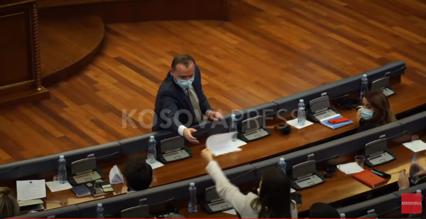 Në ndërkohë përgjatë kohës sa ishte duke folur deputetja e VV-së, ishte ish-ministri i Shëndetësisë Armend Zemaj ai i cili i shkoi tek vendi asaj dhe insistonte që e njëjta ta lexonte atë marrëveshje.