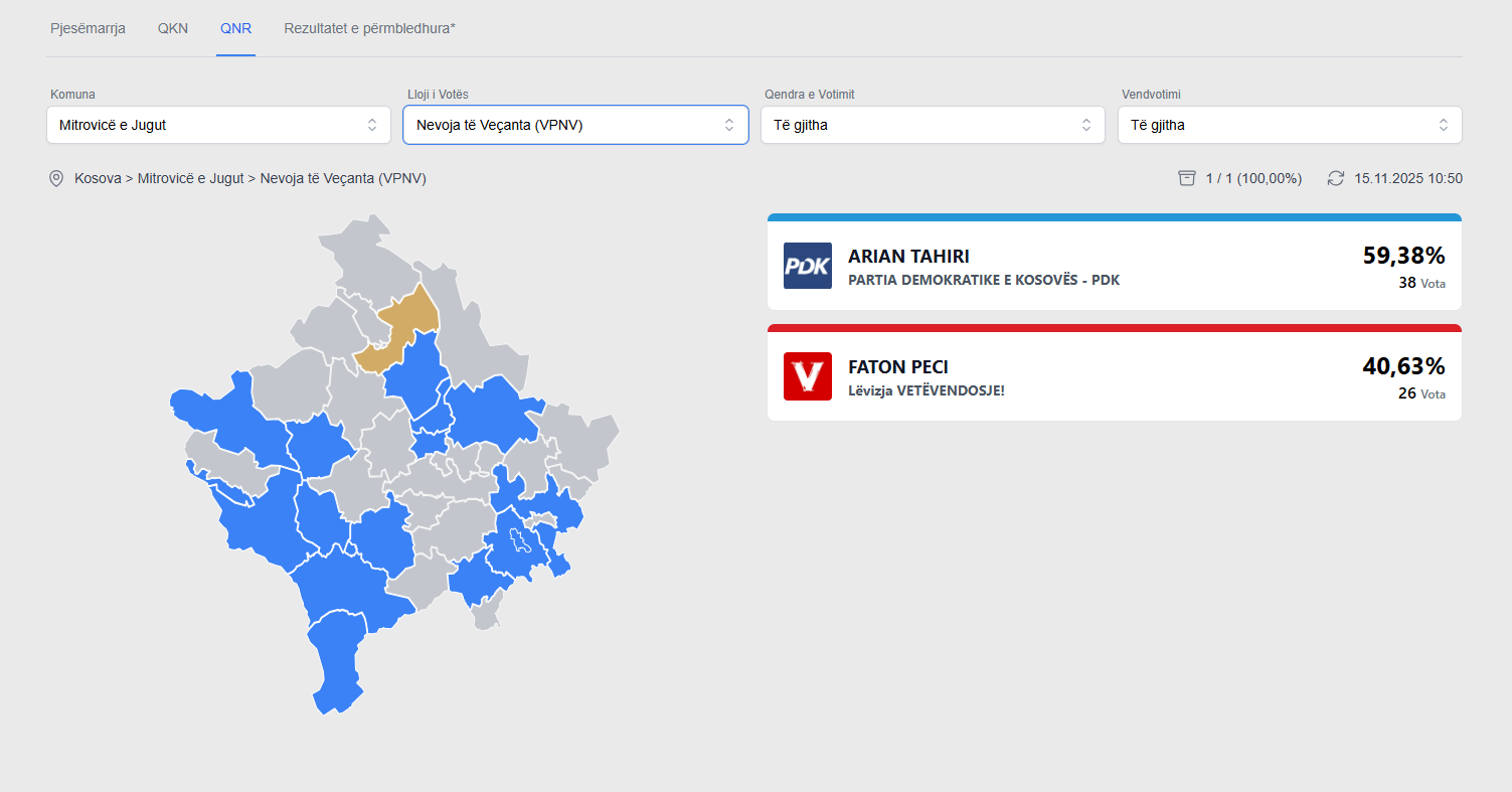 Në faqen e Komisionit Qendror të Zgjedhje tashmë janë publikuar rezultatet e numërimit të votave me kusht dhe të atyre të personave me nevoja të veçanta për balotazhin e 9 nëntorit në komunën e Mitrovicës së Jugut.