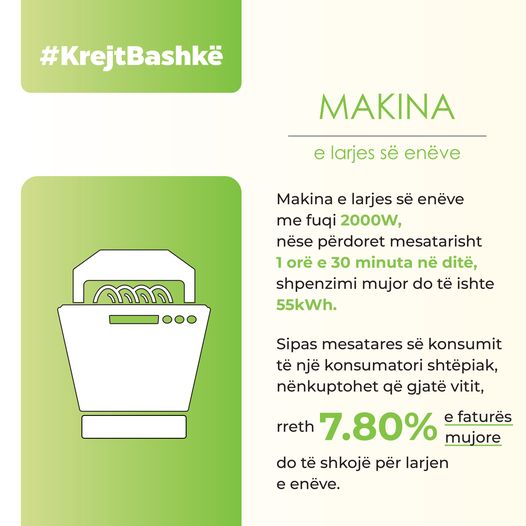“Një përqindje e tillë mund të zvogëlohet nëse enëlarësen nuk e lëshojmë pa qenë e mbushur. Po ashtu, mënyrë tjetër e kursimit është edhe përdorimi i enëlarëses pas orës 22:00 (kur fillon tarifa e ulët)”, thuhet në një postim në faqen e KEDS.