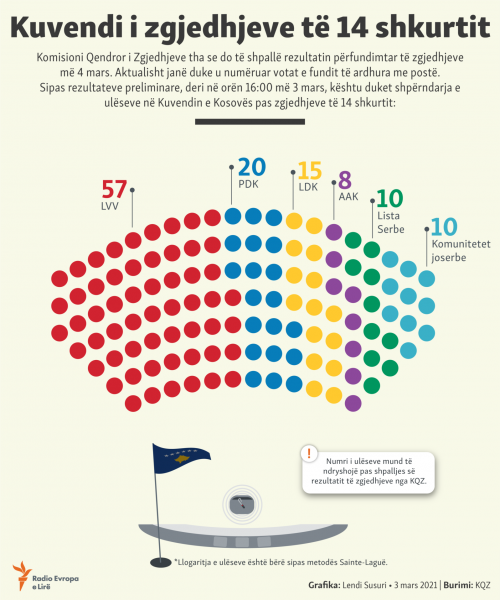 Qendra e Numërimit të Votave ka njoftuar se janë numëruar të gjitha votat e dërguara me postë. Duke marrë parasysh të gjitha votat e numëruara, fituesja e këtyre zgjedhjeve, Lëvizja Vetëvendosja, ka marrë 57 mandate në Kuvendin e Kosovës.