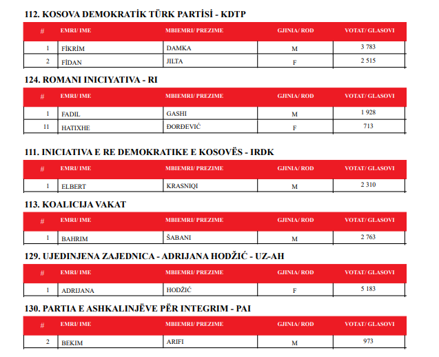 Këta do të jenë 120 deputetët e ardhshëm të Kuvendit të Kosovës