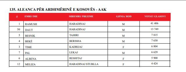 Ndërsa AAK’ja në legjislaturën e re do të ketë 8 ulëse.