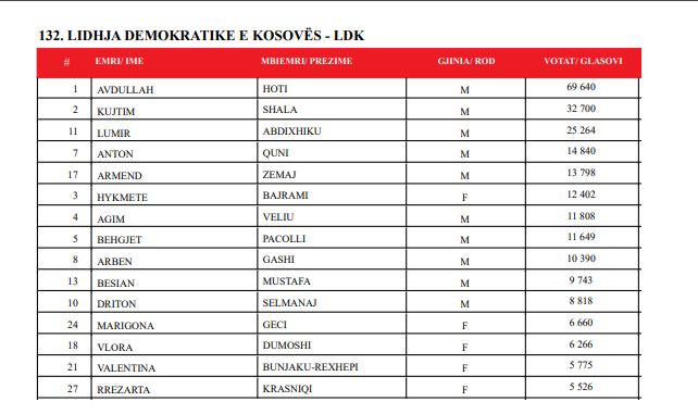 LDK’ja në Kuvendin e Kosovës do t’i 15 ulëse.