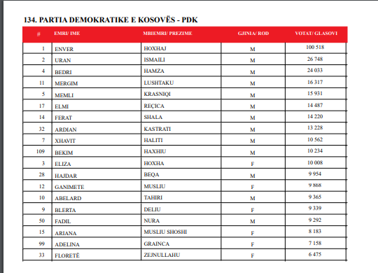 PDK’ja në legjislaturën e ardhshme të Kuvendit të Kosovës do të ketë 19 ulëse.