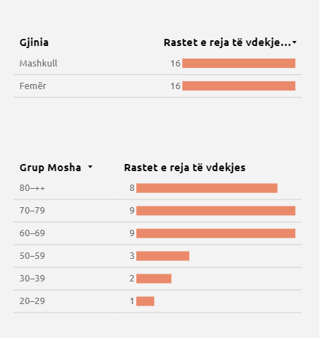 8 viktima, 5 gra dhe 3 burra janë të moshës mbi 80 vjeçare.