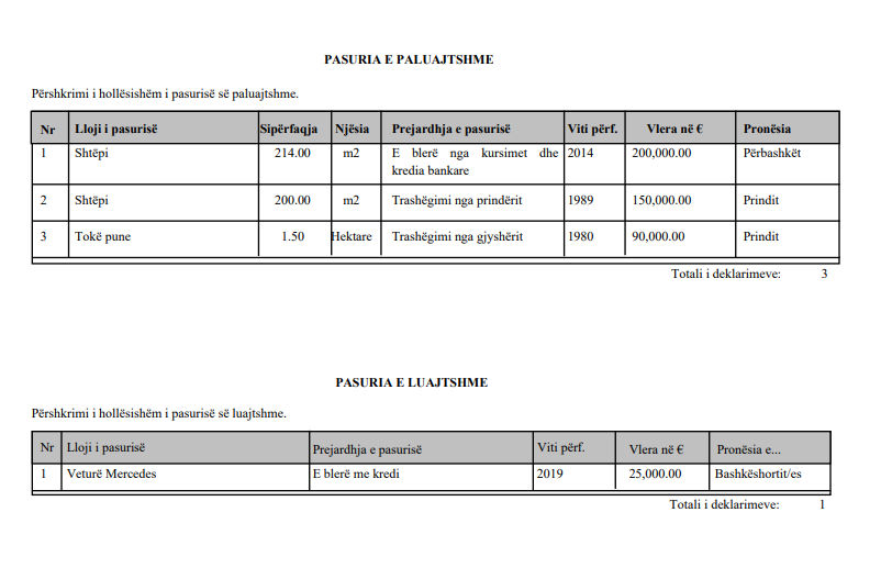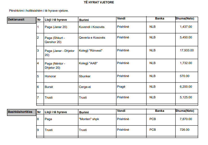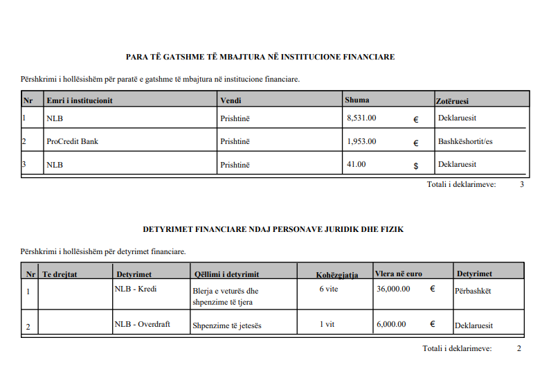 Ndërsa ai ka deklaruar edhe 1 mijë e 953 euro të bashkëshortes.
