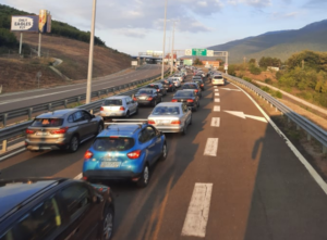 Aty shihet se është krijuar një kolonë e gjatë nga numri i madh i automjeteve që ia kanë mësyrë kosovarët të shijojnë pushimet verore në Shqipëri.