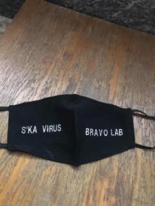“Ska virus, Bravo Lab”, shkruan në një maskë të një qytetari të cilën e ka shpërndarë në rrjete sociale.