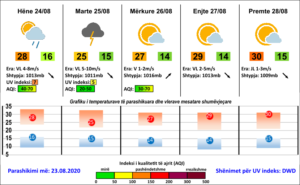 Shtypja atmosferike do të luhatet përreth vlerave normale, e në fundjavë me tendencë rënie. /gazetametro.net