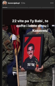 “22 vite pa ty babi, të qoftë i lehtë dheu i Kosovës”- ka shkruar Leonora në postimin e saj.