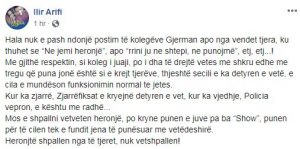 Në llogarinë e tij të Facebook-ut ai mes tjerash bëri apel që mjekët punën ta kryejnë pa bërë “Show”.
