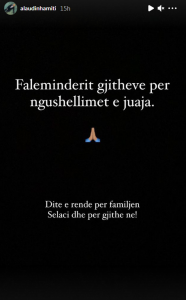 Ndërsa në një postim në “Instastory”, moderatori i njohur shkruan: “Faleminderit të gjithëve për ngushëllimet e juaja. Ditë e rëndë për familjen Selaci dhe për gjithë ne!”.