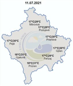 Temperaturat minimale do të lëvizin ndërmjet 17-18 gradë Celsius, ndërsa maksimalet e ditës parashihen të lëvizin ndërmjet 29-31 gradë Celsius.