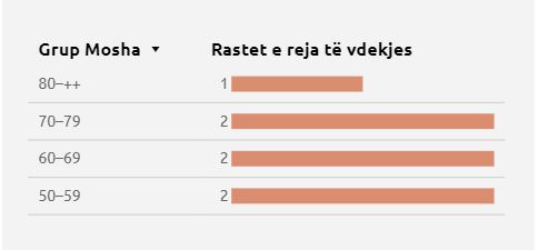 Mosha e personave varion nga 50-59 vjeç dy persona, 60-69 vjeç dy persona, 70-79 vjeç dy persona dhe plus 80 një person.