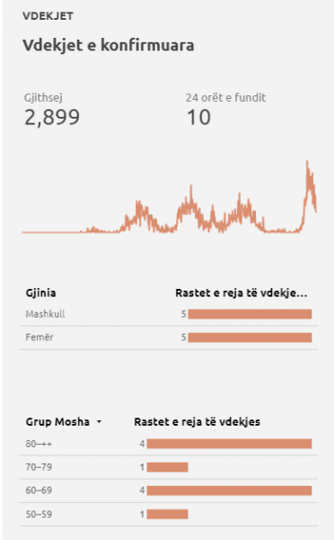 10 persona të infektuar me koronavirus kanë vdekur në 24 orët e fundit. 5 prej viktimave janë burra dhe 5 gra. Ministria e Shëndetësisë ka treguar edhe se të çfarë grumposhash janë viktimat.