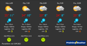 Prishtina Weather ka njoftuar se java e dytë e shtatorit do të jetë me mot më të qëndrueshëm, me diell e vranësira, transmeton Gazeta Sinjali.