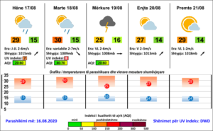 Prej së enjtes do të kemi sërish rritje të temperaturave. Minimalet do të lëvizin nga 14C deri në 16C, ndërsa maksimalet 25C deri në 30C.