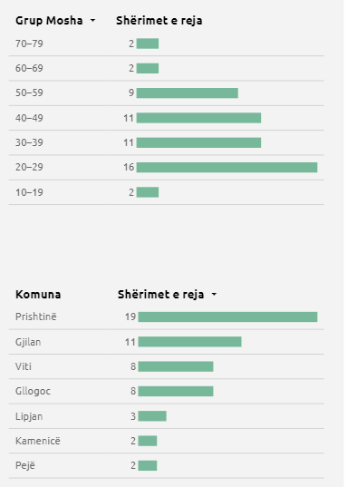 Në mesin e të shëruarve janë 2 fëmijë të moshës 10-19 vjeçare, 16 të moshës 20-20 vjeçare dhe 11 të moshës 30-39 vjeçare.