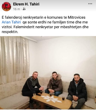 Në një postim në facebook, Ekremi ka falënderuar nënkryetarin Tahiri për vizitën, përkrahjen dhe respektin.