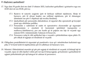 Të gjithë qytetarëve të Kosovës iu ndalohet lëvizja nga ora 22:00 deri në orën 05:00.