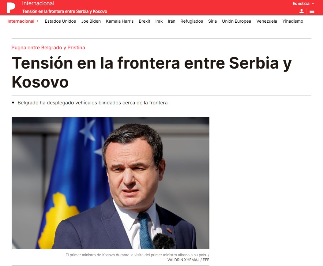“Tension në kufirin midis Serbisë dhe Kosovës” është titulli i shkrimit të medias spanjolle elPeriodico