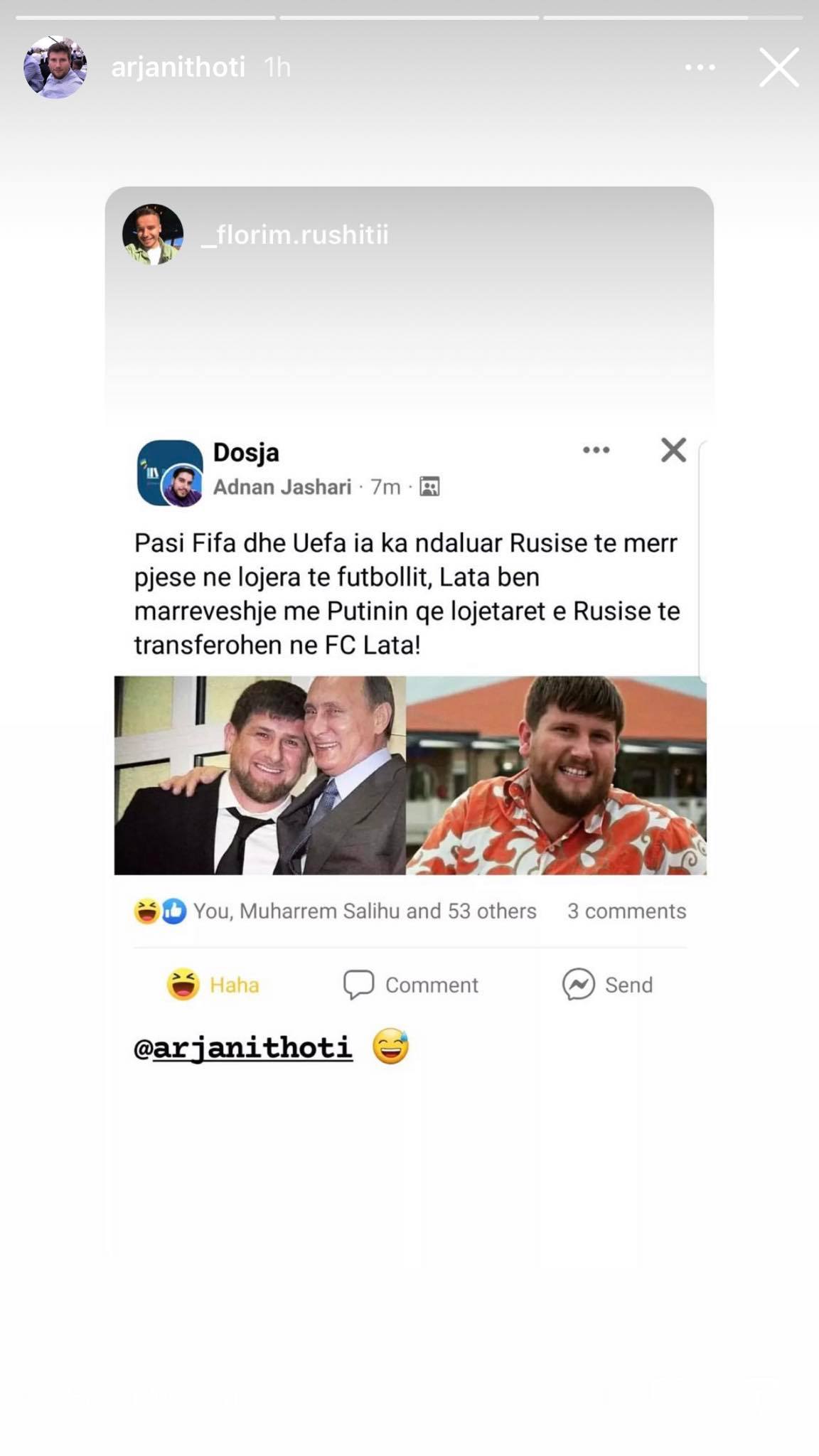 Mirëpo ajo çka e bëri të frikshme këtë fotografi është ngjashmëria e madhe e aktorit kosovar Arjanit Hotit me liderin çeçen Ramzan Kadyrov.