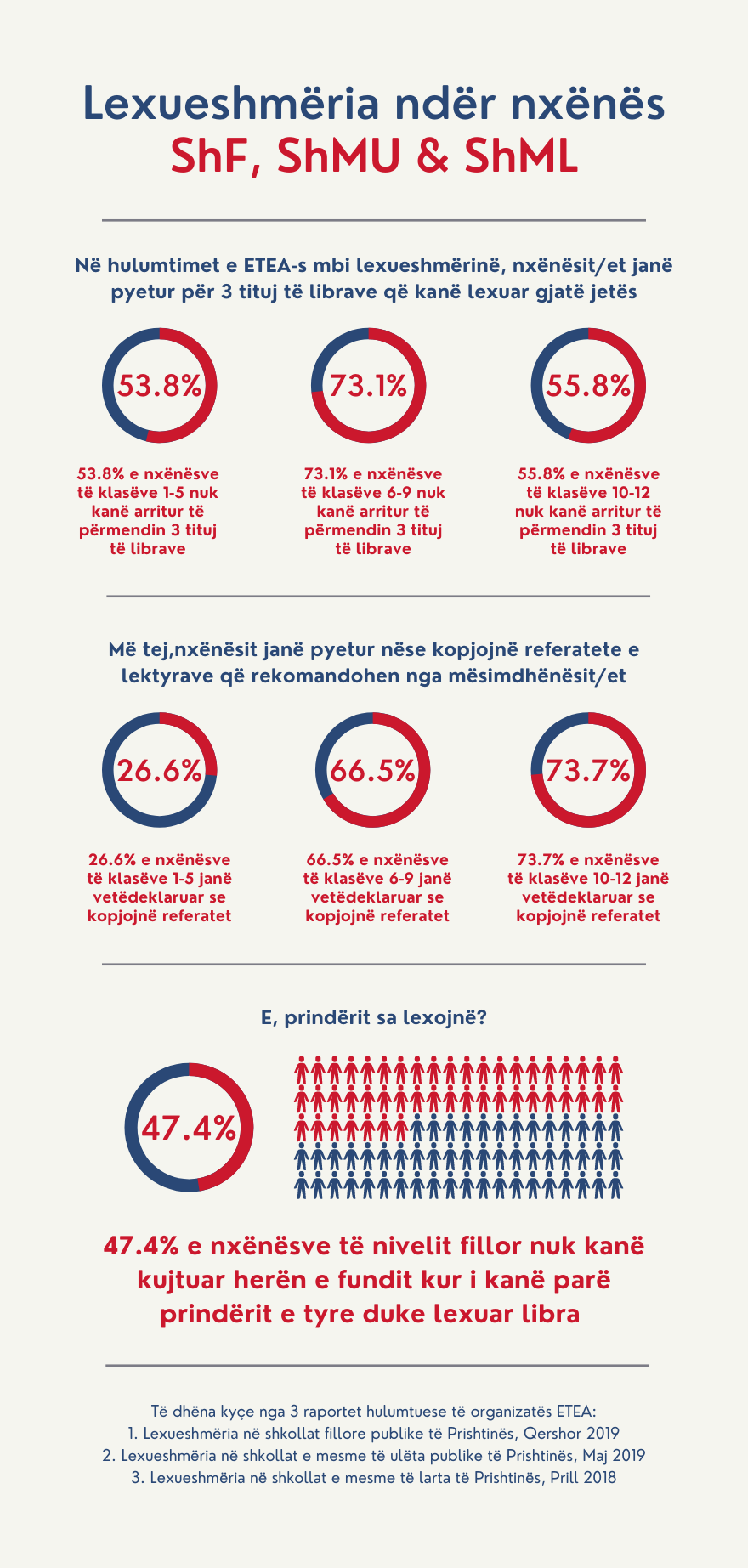 Organizata Joqeveritare ETEA, në Ditën Botërore të Librit, ka publikuar statistika se sa lexojnë nxënësit kosovarë dhe të dhënat që kanë dalë nga ky hulumtim janë mjaft shqetësuese.